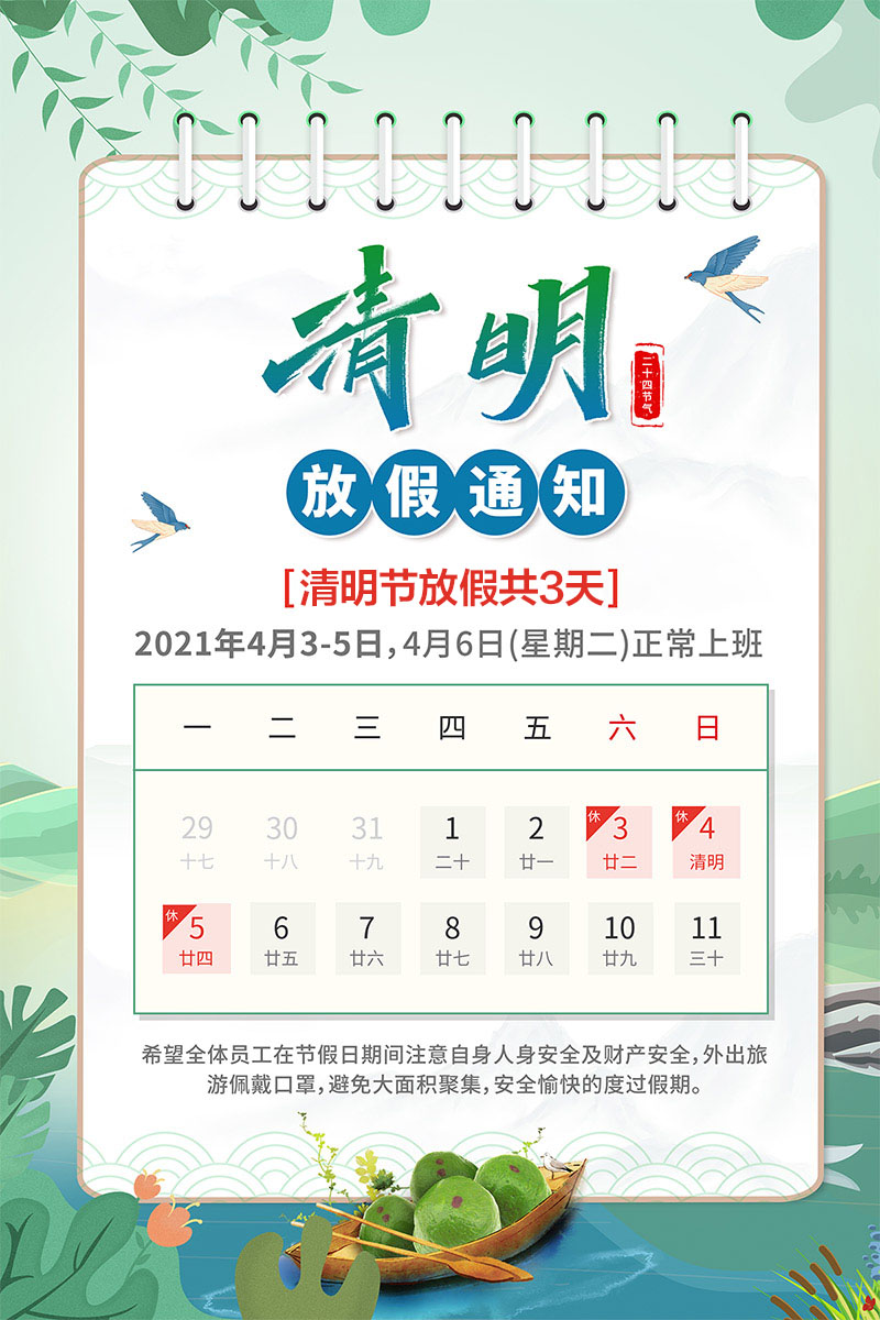 山東礦安機(jī)電2021年清明節(jié)放假通知