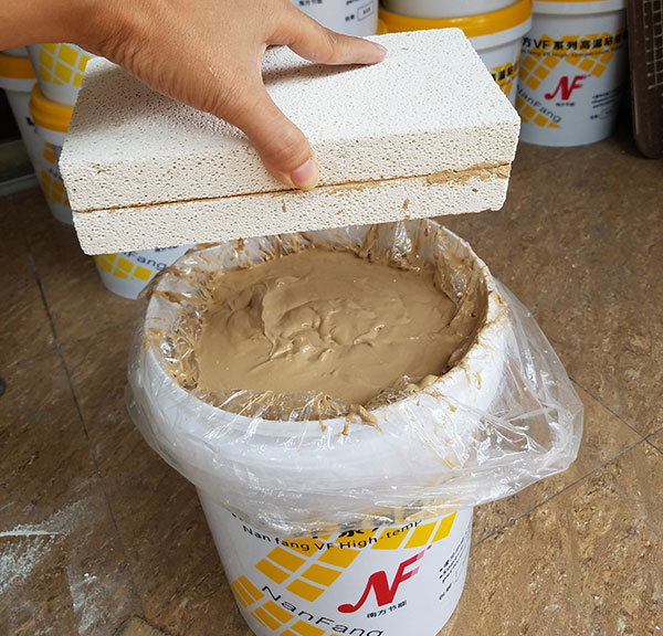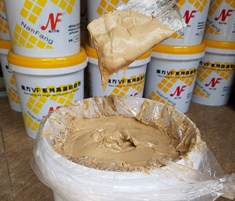 VF高溫粘結(jié)劑是一種均勻的粘稠狀膠體產(chǎn)品,由多種耐火材料和特殊結(jié)合劑混配而成,產(chǎn)品固化后具有較高的結(jié)合強度。使用溫度1400℃,灰縫小,收縮率小。
